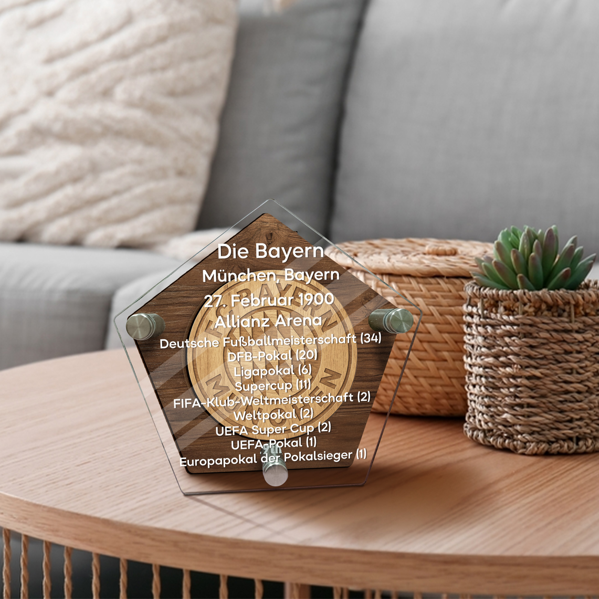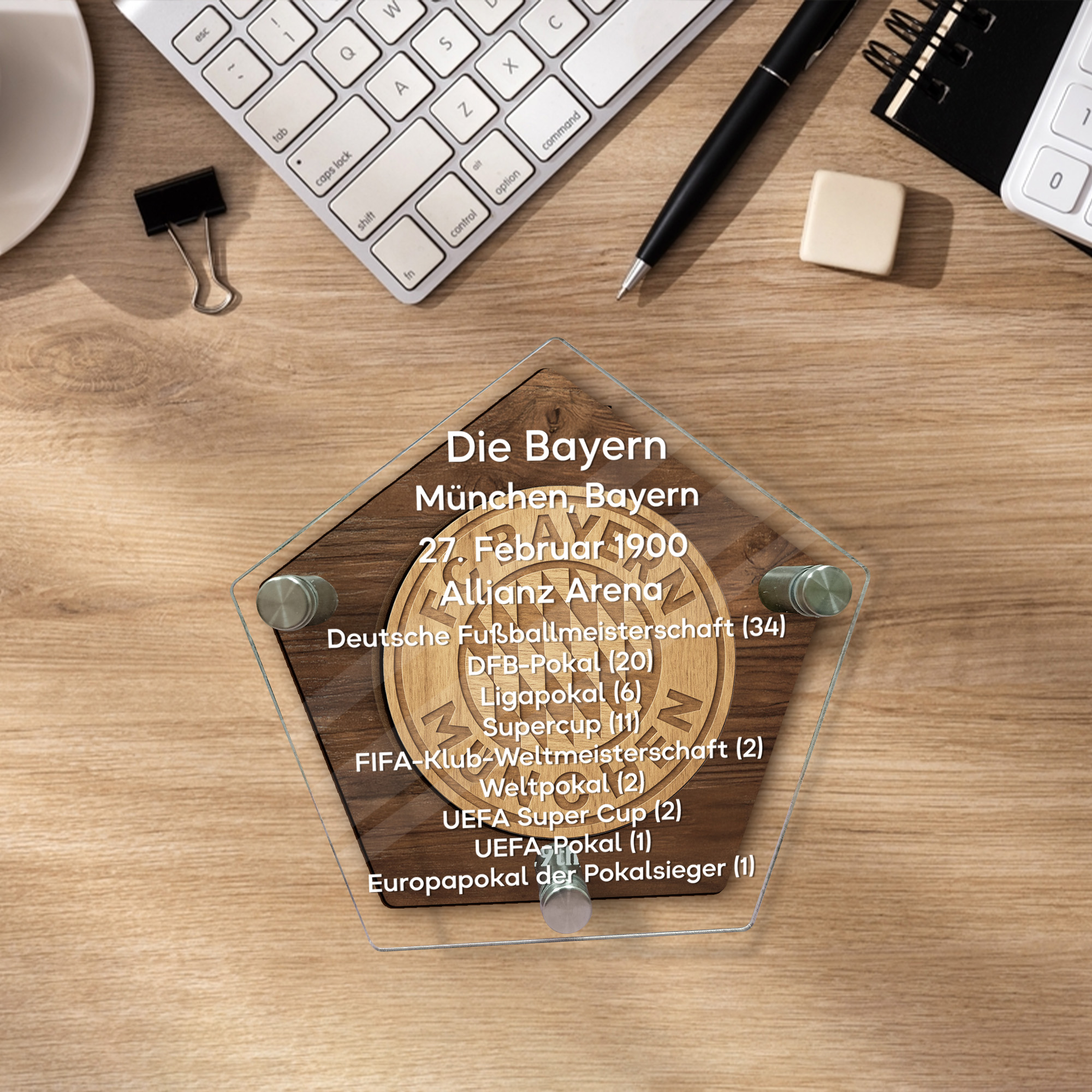 Crafted from premium wood and clear acrylic, this plaque features a wooden back panel (5mm), an additional decorative wooden layer (3mm), and a sleek transparent acrylic front panel (3mm). Sturdy metal pins securely connect each layer, creating a refined and durable construction. - Sizes and Dimensions: